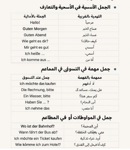 تعلم جمل اللغة الألمانية الأساسية هو أفضل بداية لأي متعلم جديد. ستساعدك هذه الجمل في التواصل وفهم ما يدور حولك في ألمانيا أو أي بلد ناطق بالألمانية. لا تضغط على نفسك، فقط استمتع بالتعلم خطوة بخطوة، وستصل إلى الطلاقة مع الوقت.